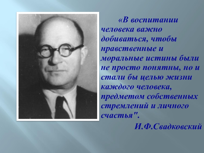 Слайд 4 «Воспитатель должен стремиться узнать человека, каков он есть в действительности,