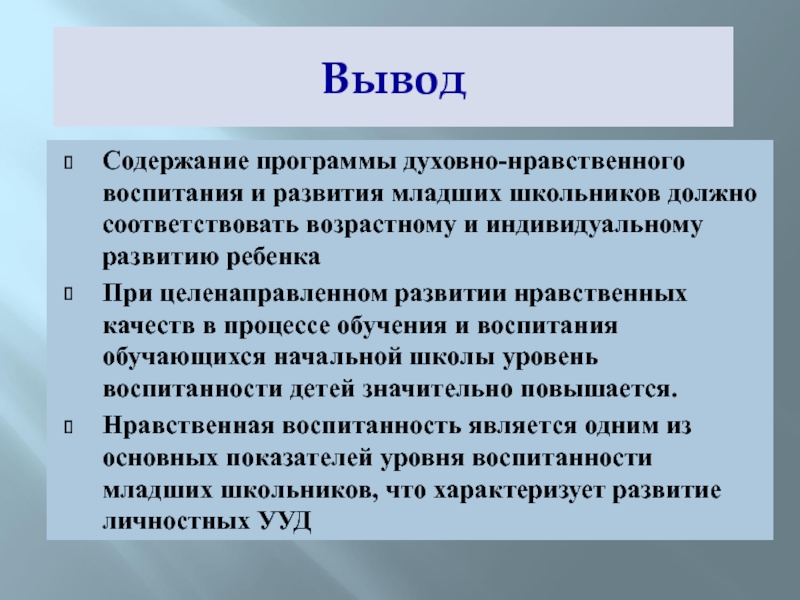 Нравственная воспитанность является одним из основных показателей уровня воспитанности младших школьников, что характеризует развитие личностных УУД