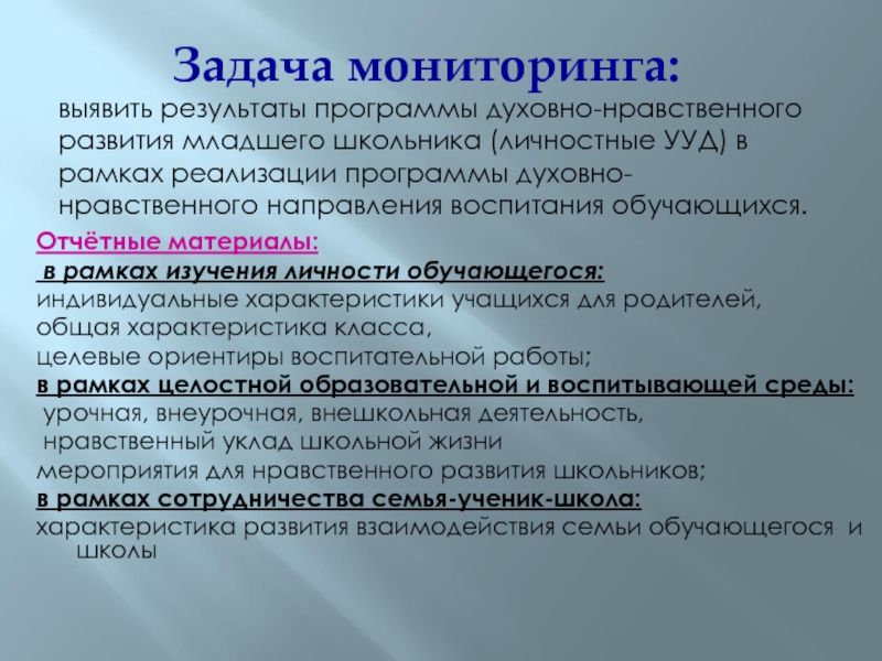 выявить результаты программы духовно-нравственного развития младшего школьника (личностные УУД)
