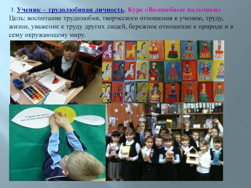 Слайд 12 3. Ученик – трудолюбивая личность. Курс «Волшебные пальчики»