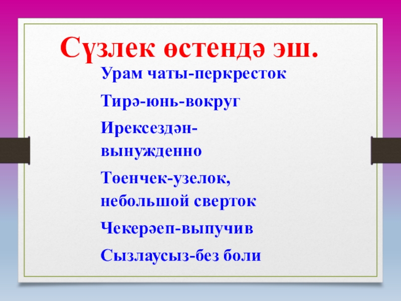 Үстерү: сүз байлыгын , мөстәкыйль фикер йөртә белүләрен үстерү.