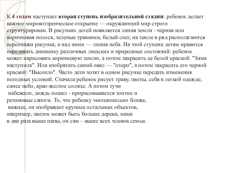 изображать какие –либо определённые предметы и явления. Интерес к изобразительной деятельности возникает в результате подражания взрослого. Этот период исследователи называют