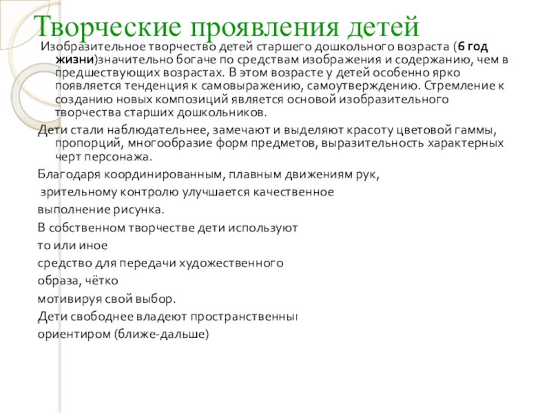 Изобразительное творчество детей старшего дошкольного возраста (6 год