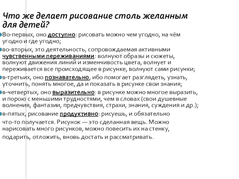 Слайд 4Что же делает рисование столь желанным для детей?