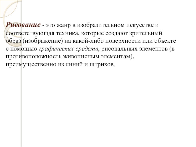 Слайд 2Рисование - это жанр в изобразительном искусстве и соответствующая техника, которые создают