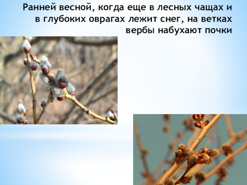 Ранней весной, когда еще в лесных чащах и в глубоких оврагах лежит снег, на ветках вербы набухают