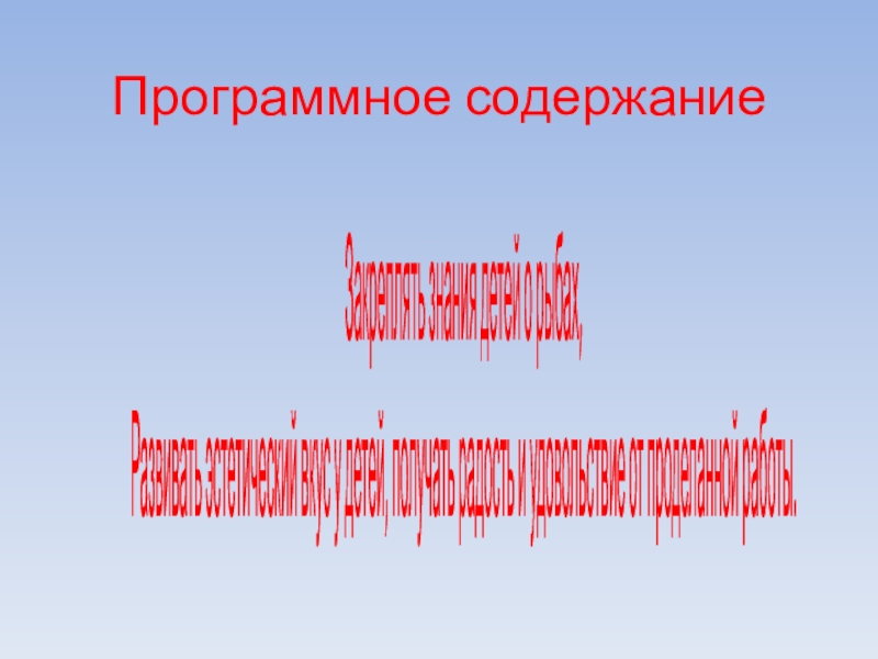 Программное содержаниеЗакреплять знания детей о рыбах,Развивать эстетический вкус у детей, получать радость и удовольствие от проделанной работы.