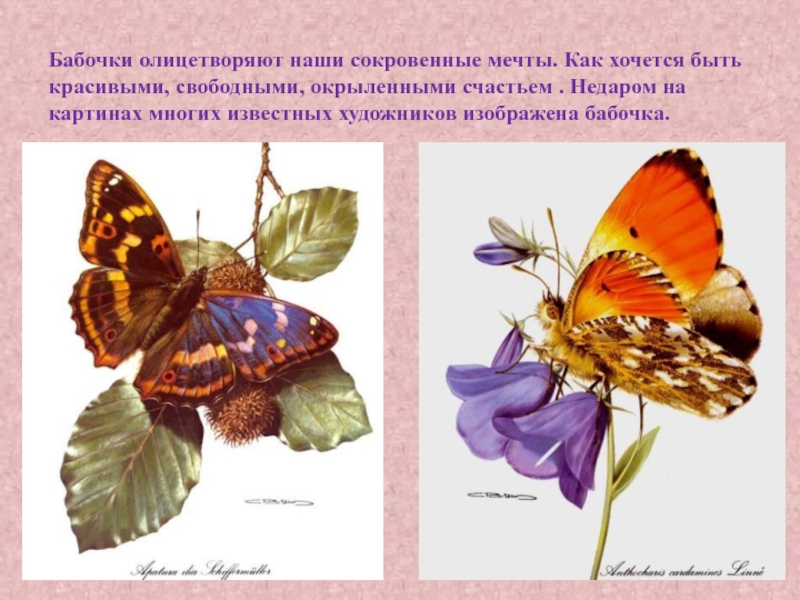 Слайд 7Бабочки олицетворяют наши сокровенные мечты. Как хочется быть красивыми, свободными, окрыленными