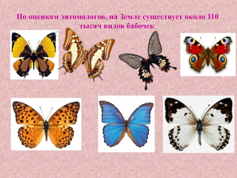 Слайд 3По оценкам энтомологов, на Земле существует около 110 тысяч видов бабочек.