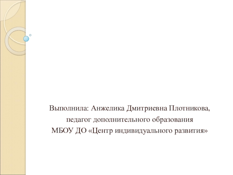 Выполнила: Анжелика Дмитриевна Плотникова, педагог дополнительного образованияМБОУ ДО «Центр индивидуального развития»