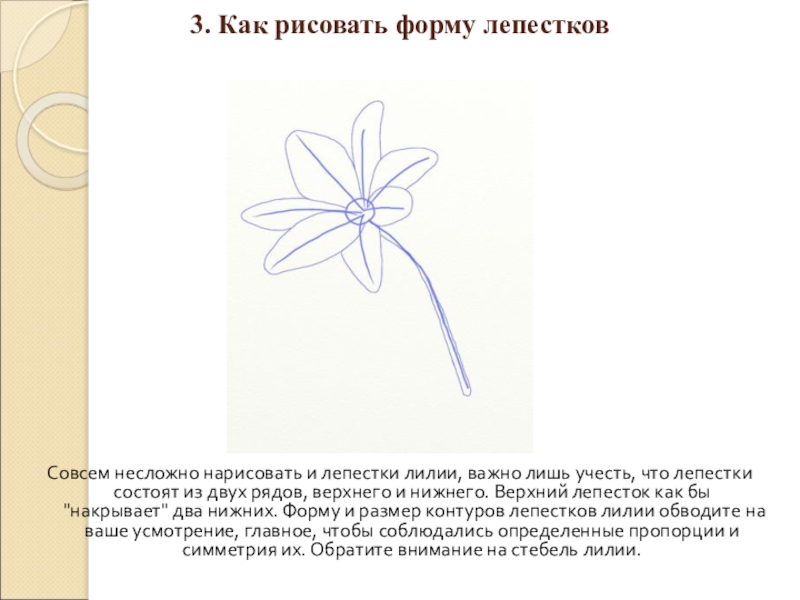 3. Как рисовать форму лепестков Совсем несложно нарисовать и лепестки лилии, важно лишь учесть, что лепестки состоят