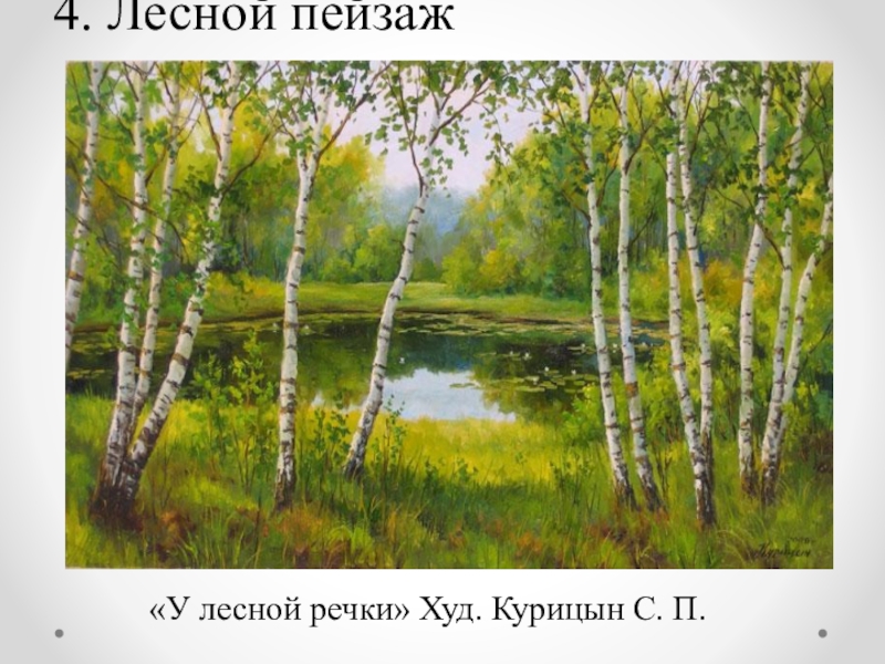 4. Лесной пейзаж«У лесной речки» Худ. Курицын С. П.
