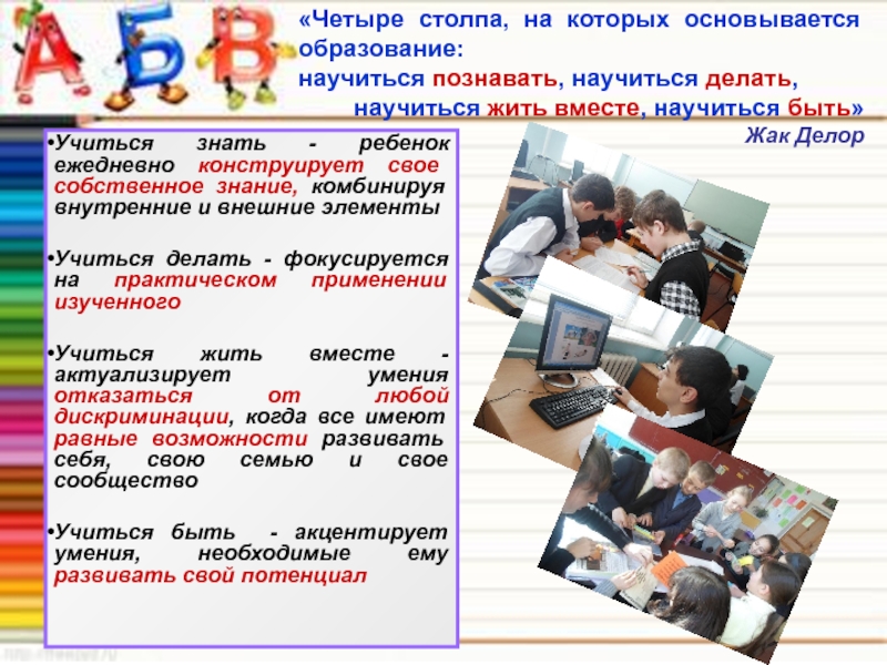 Учиться быть - акцентирует умения, необходимые ему развивать свой потенциал