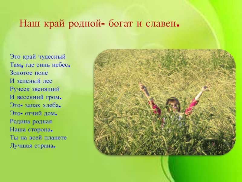 Наш край родной- богат и славен.