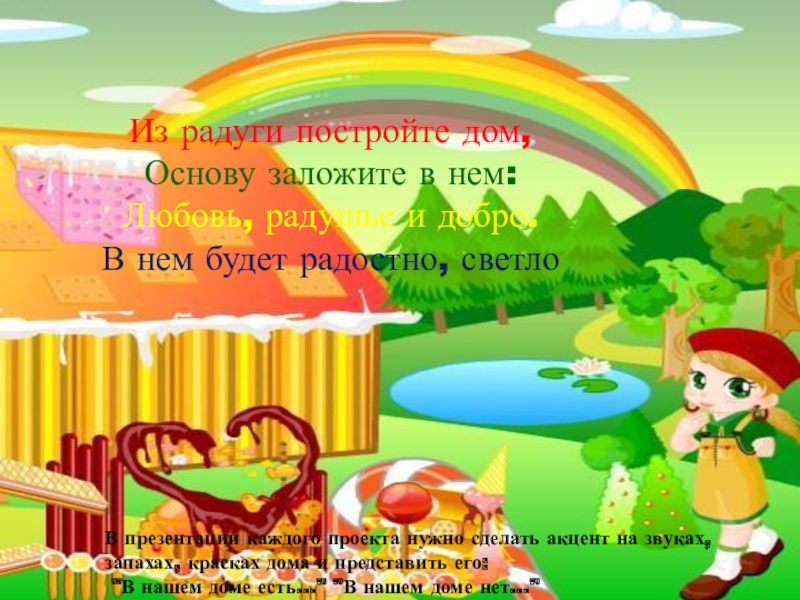 В презентации каждого проекта нужно сделать акцент на звуках, запахах, красках дома и представить его:
