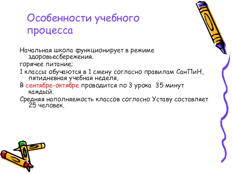 Особенности учебного процесса