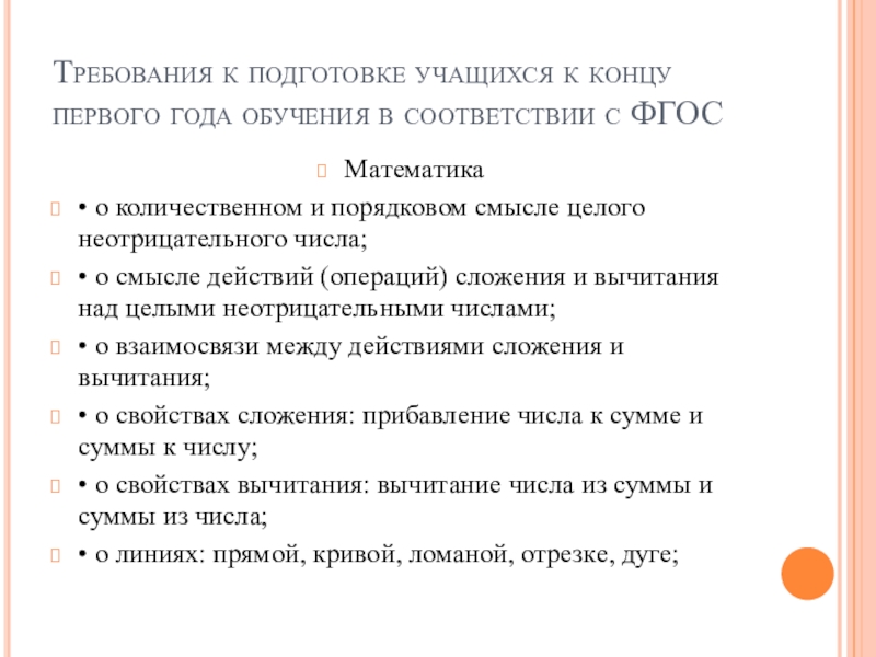 Слайд 7Требования к подготовке учащихся к концу первого года обучения в соответствии