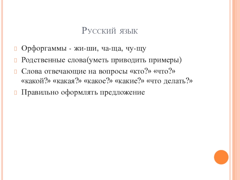 • писать слова с сочетаниями жи_ши, ча_ща, чу_щу, ци_це под ударением;
