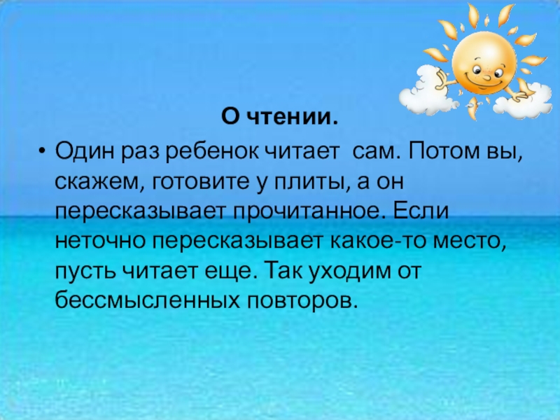 Один раз ребенок читает сам. Потом вы, скажем, готовите у