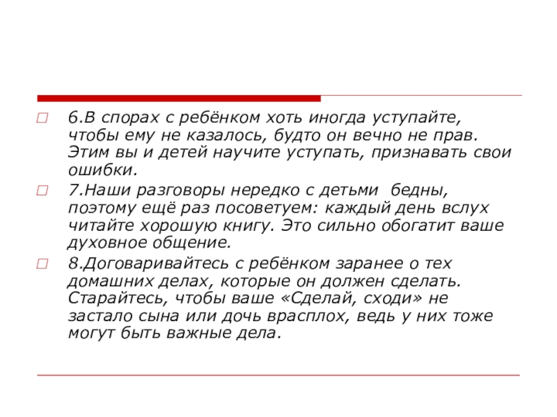6.В спорах с ребёнком хоть иногда уступайте, чтобы ему не казалось,