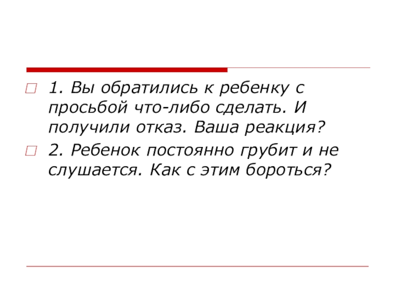 1. Вы обратились к ребенку с просьбой что-либо сделать. И получили отказ.