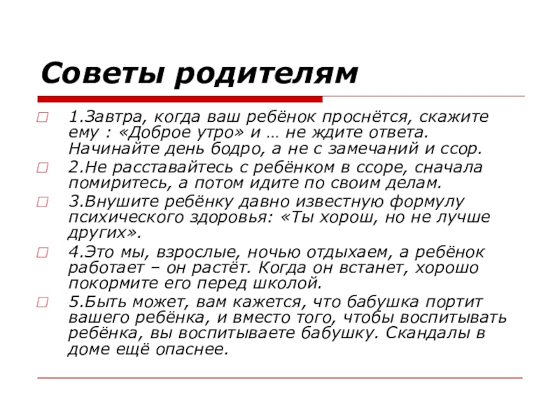 1.Завтра, когда ваш ребёнок проснётся, скажите ему : «Доброе утро»