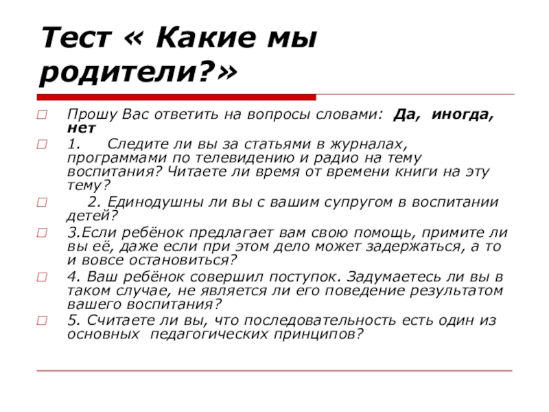 Вы не делаете крупных ошибок в воспитании, но все же кое в чём над собой и своими итогами в этой области вам следовало бы задуматься.