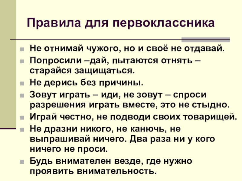 Не дразни никого, не канючь, не выпрашивай ничего. Два раза ни у кого ничего не проси.