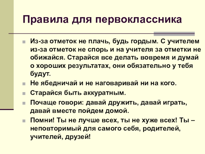 Помни! Ты не лучше всех, ты не хуже всех! Ты – неповторимый для самого себя, родителей, учителей, друзей!