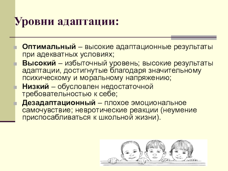 Оптимальный – высокие адаптационные результаты при адекватных условиях;
