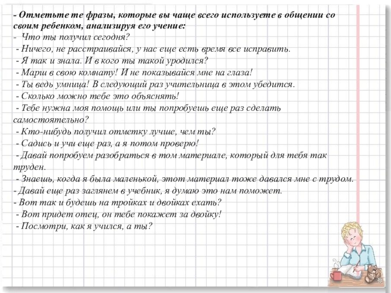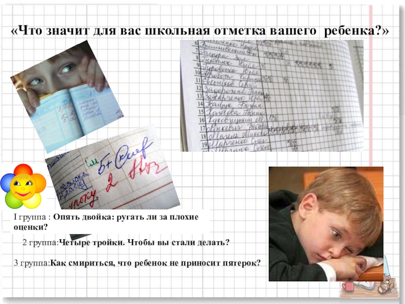 3 группа:Как смириться, что ребенок не приносит пятерок?