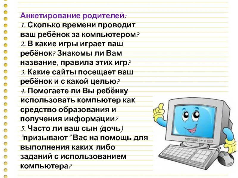 Слайд 1Родительское собрание на тему: «Дети и компьютер»