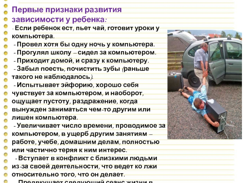 Слайд 10Первые признаки развития зависимости у ребенка: