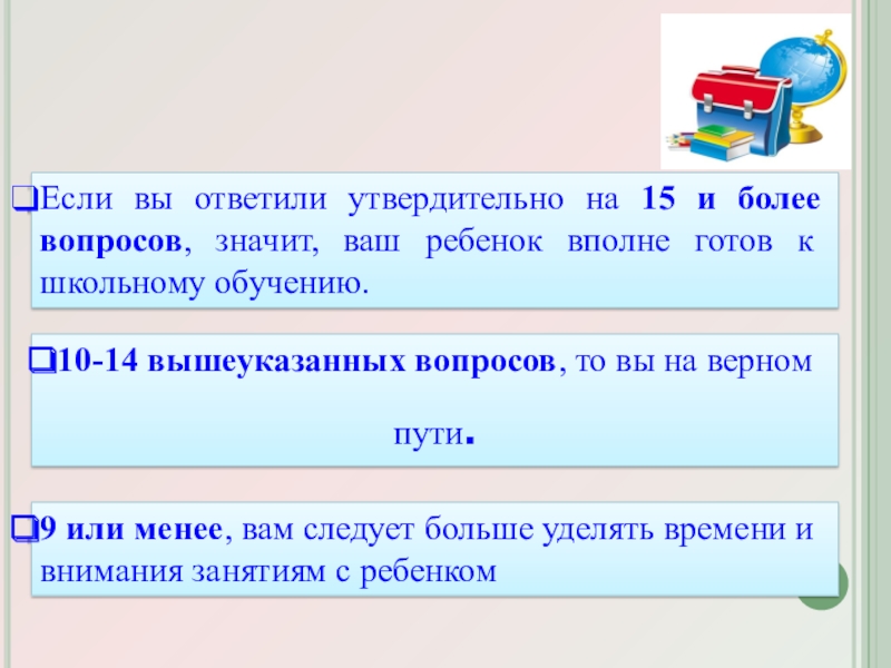 9 или менее, вам следует больше уделять времени и внимания занятиям с ребенком