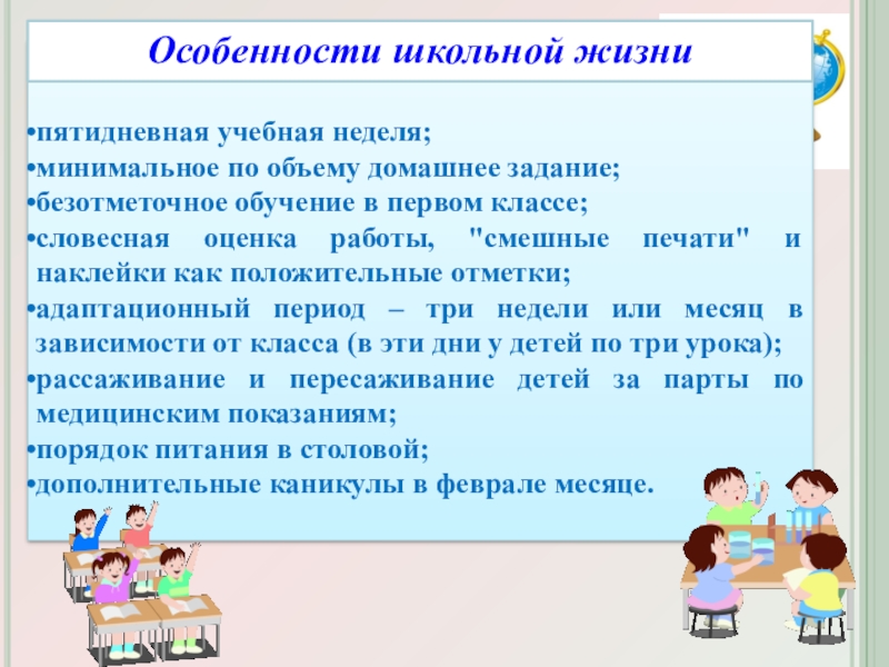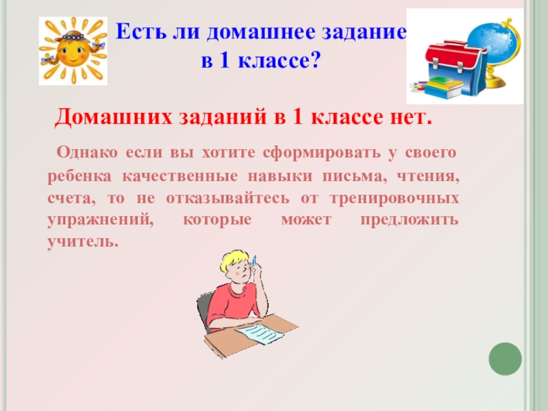В 1 классе основной упор делается на приобретение навыков учебного труда.