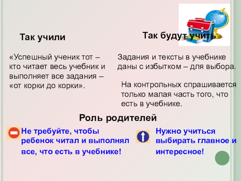 «Успешный ученик тот – кто читает весь учебник и выполняет все задания – «от корки до корки».
