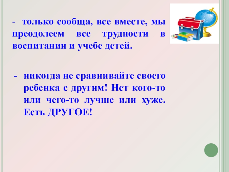 никогда не сравнивайте своего ребенка с другим! Нет кого-то или чего-то лучше или хуже. Есть ДРУГОЕ!