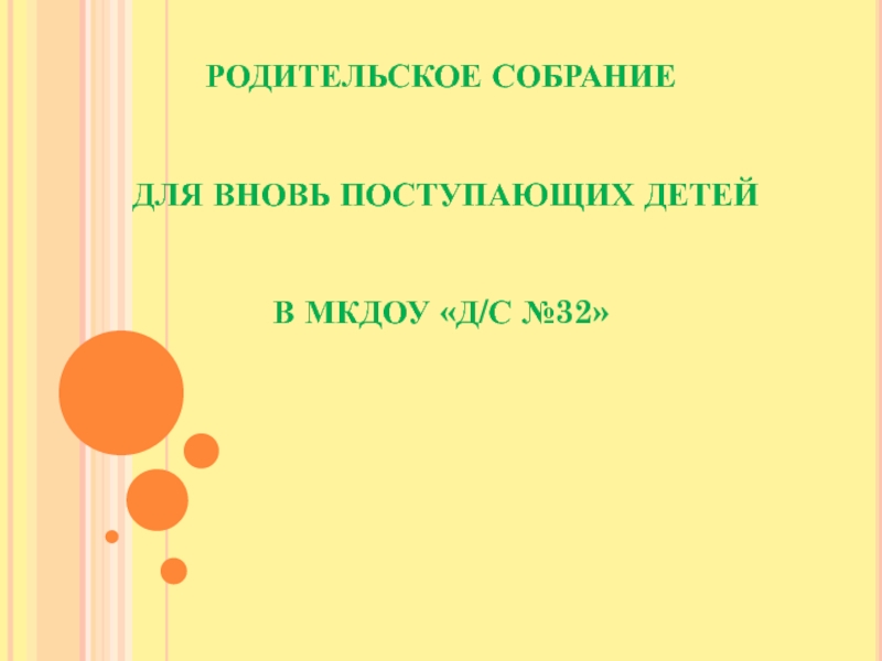 Слайд 1 РОДИТЕЛЬСКОЕ СОБРАНИЕ ДЛЯ ВНОВЬ ПОСТУПАЮЩИХ ДЕТЕЙ В МКДОУ «Д/С №32»