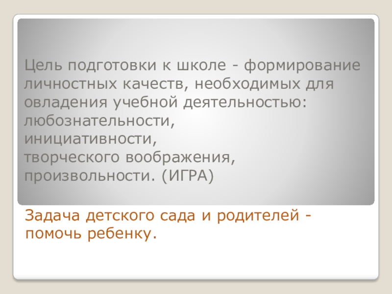 Слайд 3Цель подготовки к школе - формирование личностных качеств, необходимых для овладения