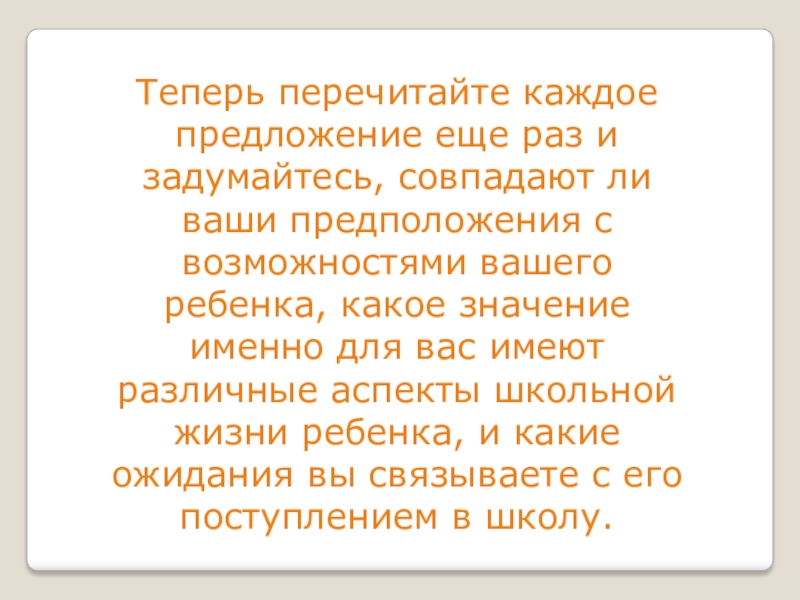предположения с возможностями вашего ребенка, какое значение именно для вас имеют различные аспекты школьной жизни ребенка, и какие ожидания вы связываете с его поступлением в школу.
