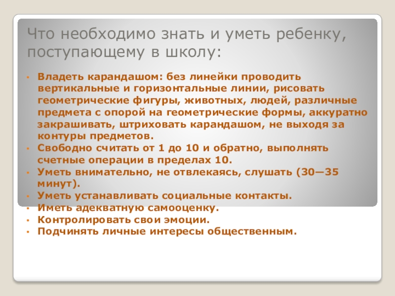 Уметь внимательно, не отвлекаясь, слушать (30—35 минут).