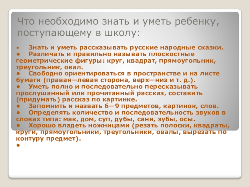 • Хорошо владеть ножницами (резать полоски, квадраты, круги, прямоугольники, треугольники, овалы, вырезать по контуру предмет).