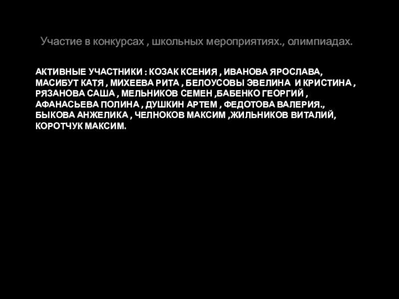 Участие в конкурсах , школьных мероприятиях., олимпиадах.