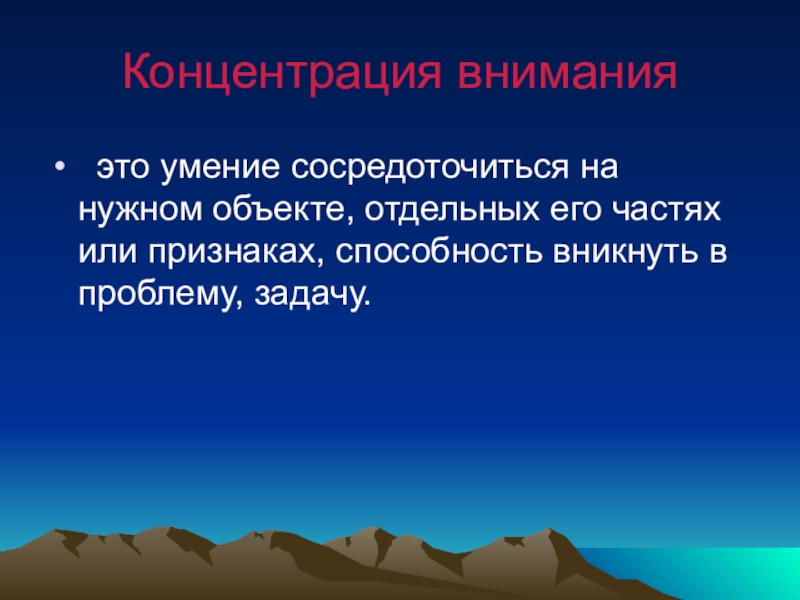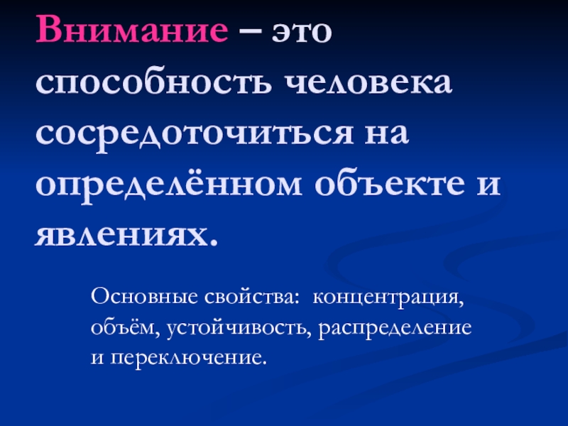 Слайд 9Внимание – это способность человека сосредоточиться на определённом объекте и явлениях.