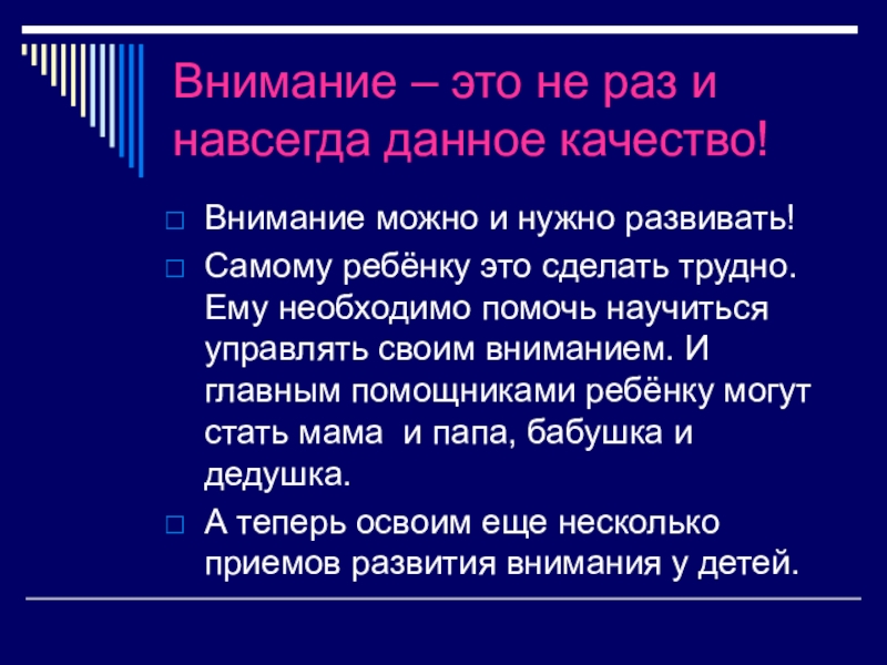 Слайд 24Внимание – это не раз и навсегда данное качество!