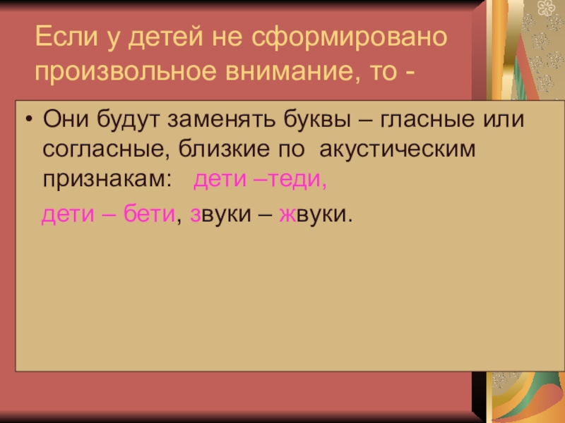 Слайд 34Если у детей не сформировано произвольное внимание, то -