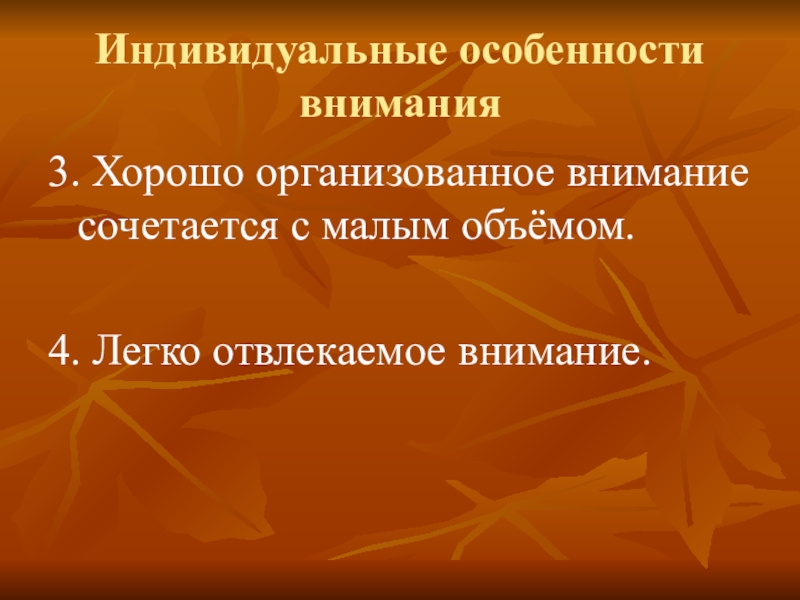 3. Хорошо организованное внимание сочетается с малым объёмом.