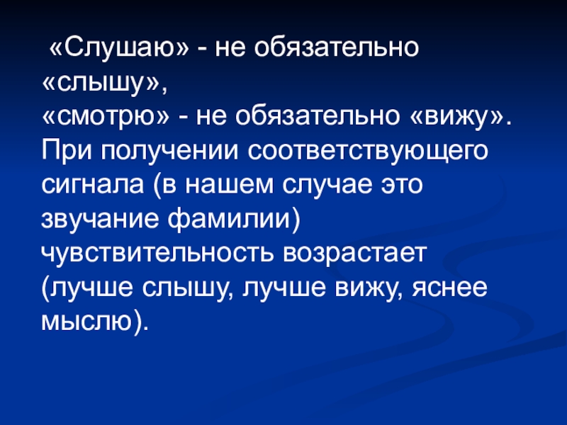 Слайд 10 «Cлушаю» - не обязательно «слышу»,