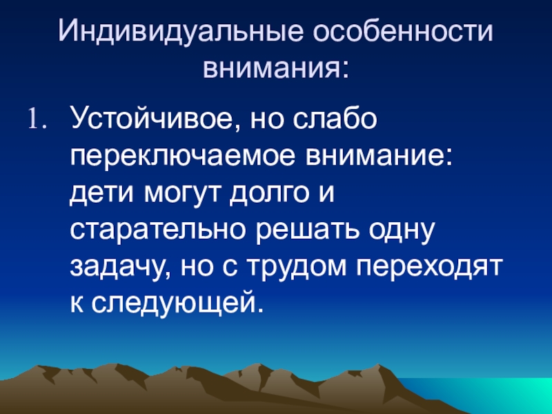 Устойчивое, но слабо переключаемое внимание: дети могут долго и