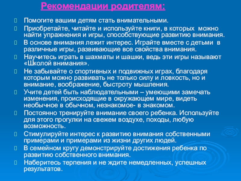 В семейном кругу демонстрируйте достижения ребенка по развитию собственного внимания.